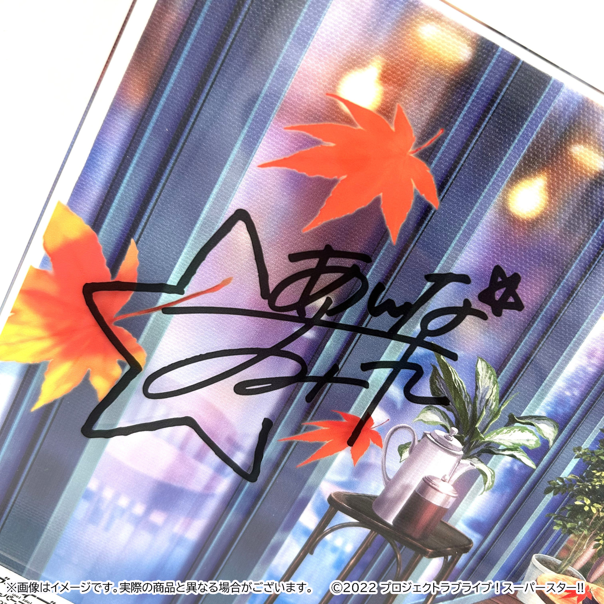 背景、メンバーイラスト、サインをそれぞれ異なるレイヤーで印刷した、立体的に鑑賞可能なアイテムです。