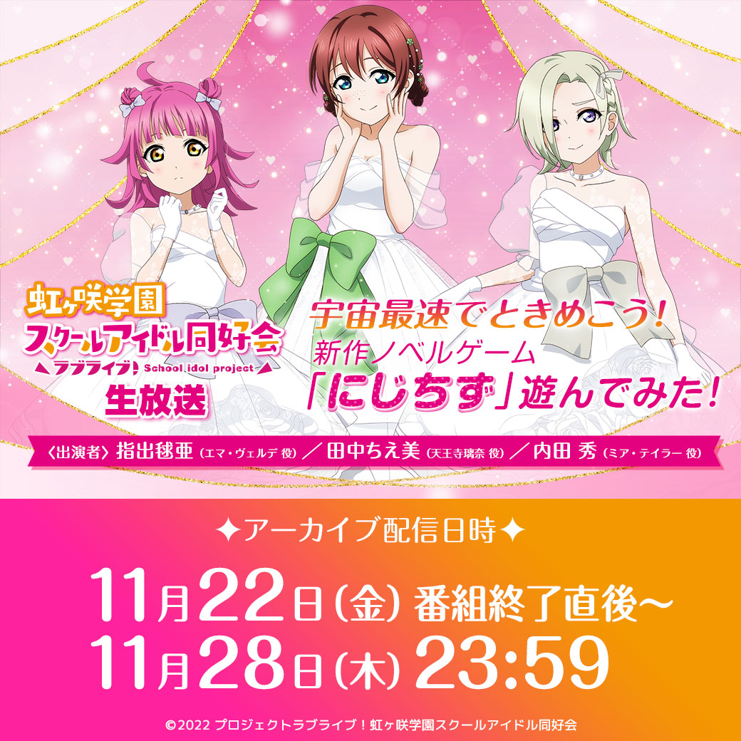 虹ヶ咲学園スクールアイドル同好会より3人のメンバーが出演する生放送番組のお知らせです!