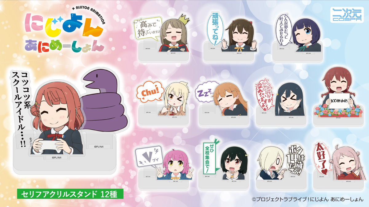 印象的なセリフと共にメンバーがアクスタに!『にじよん あにめーしょん』「セリフアクリルスタンド」12種が二次元コスパから登場!
