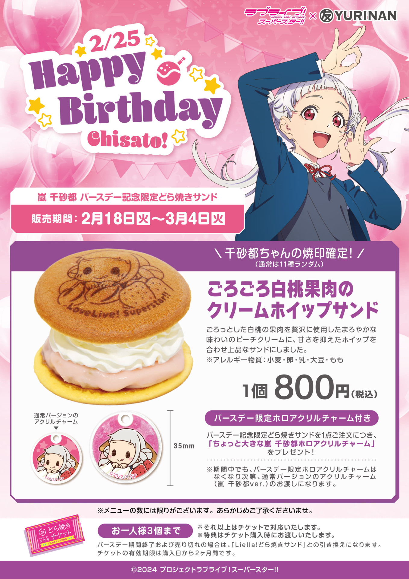 YURINAN -ゆうりんあん- より、ラブライブ!スーパースター!! 嵐 千砂都 バースデー記念メニュー販売のお知らせ!