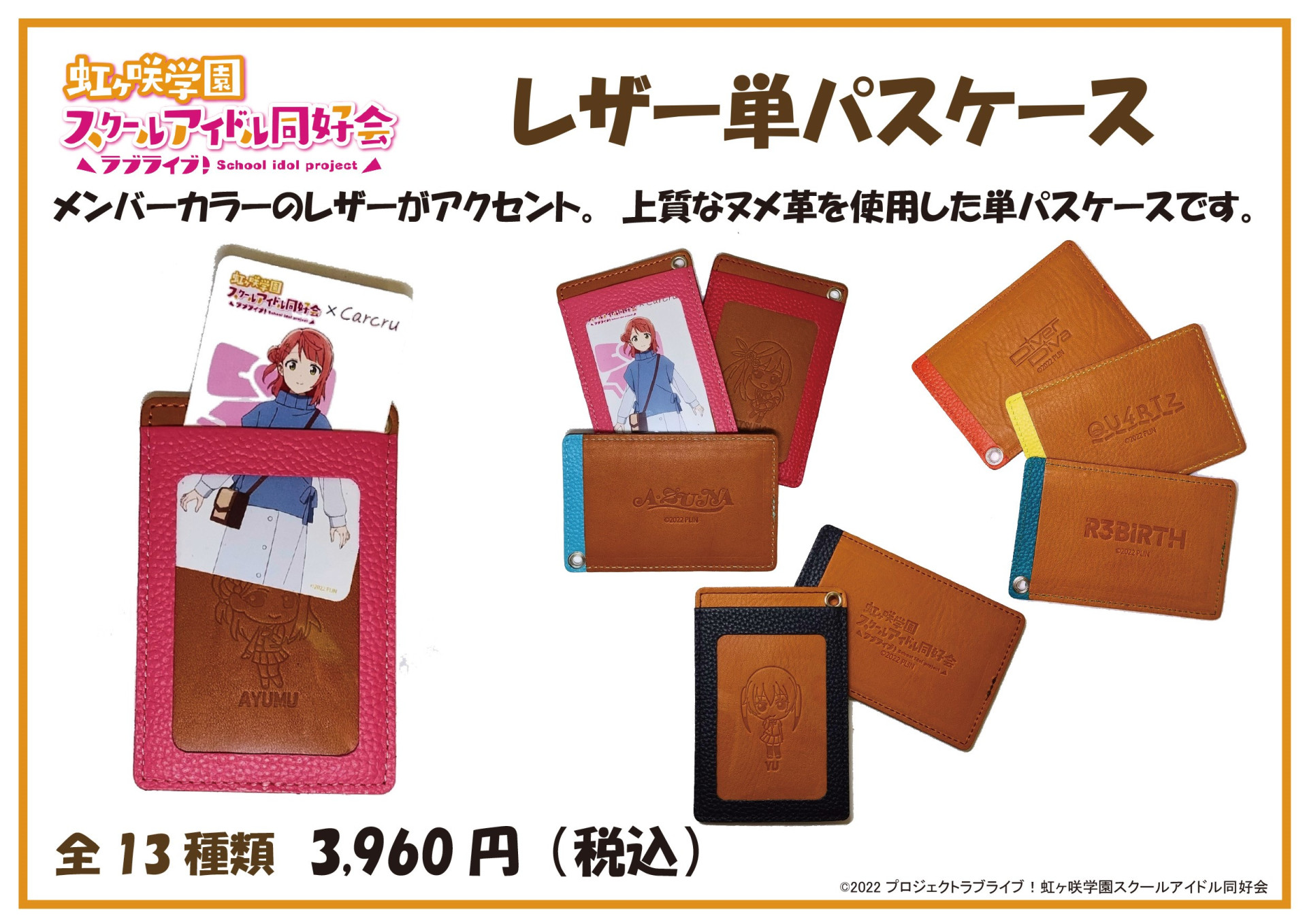 カルクルより、新商品「ラブライブ!虹ヶ咲学園スクールアイドル同好会」レザー単パスケース発売のお知らせ